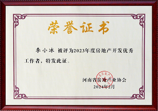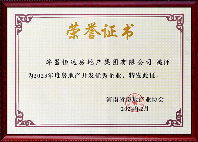 Recently, the document "Decision on Commending Outstanding Associations, Enterprises, and Individuals of 2023 at the Municipal Level" (Henan Real Estate Association [2024] No. 2) was issued and distributed by the Henan Real Estate Association. Hengda Group was recognized as an "Outstanding Enterprise", and Chairman Li Xiaobing was awarded the title of "Outstanding Worker".